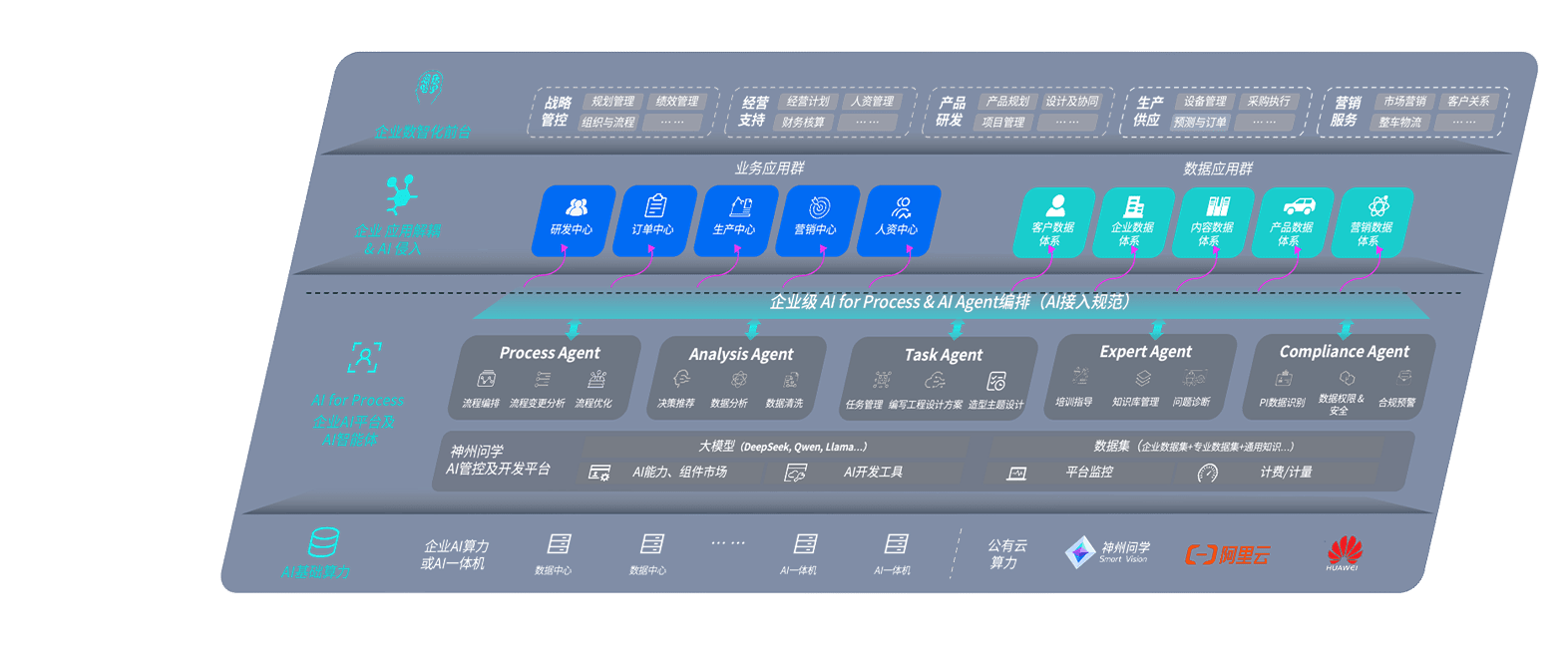 雀魂问学智车解决方案是一套基于AI技术的汽车行业智能化系统,,,,覆盖从底层算力到顶层AI应用的全栈方案。。。方案由算力层、、、模型层和应用层组成:算力层,,方案支持多种一体机配置,,具备云端灵活部署、、、、多云适配以及动态优化计算资源的能力;模型层,,雀魂问学平台版提供了企业级AI应用一站式构建与管理平台,,,,支持基于后训练强化技术的汽车企业专属模型的训练、、、、评测和运营;应用层,,,雀魂问学DeepSeek版提供包括超级员工、、、智能招采、、智能营销、、智能客服、、AI for BI等一系列解决方案,,,可助力汽车行业实现数字化转型,,让管理更智能、、、、响应更敏捷。。。